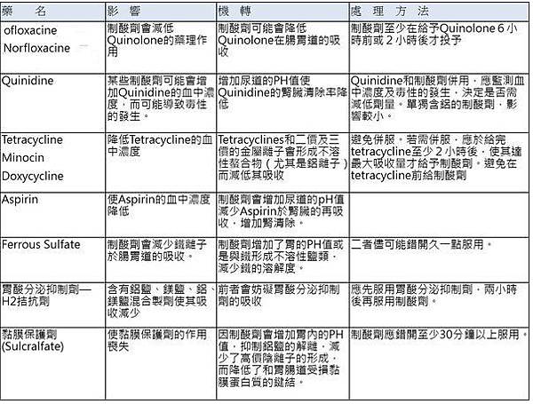 詳細交互作用機轉,請參考「快樂小藥師-那些藥物不宜和制酸劑併服」